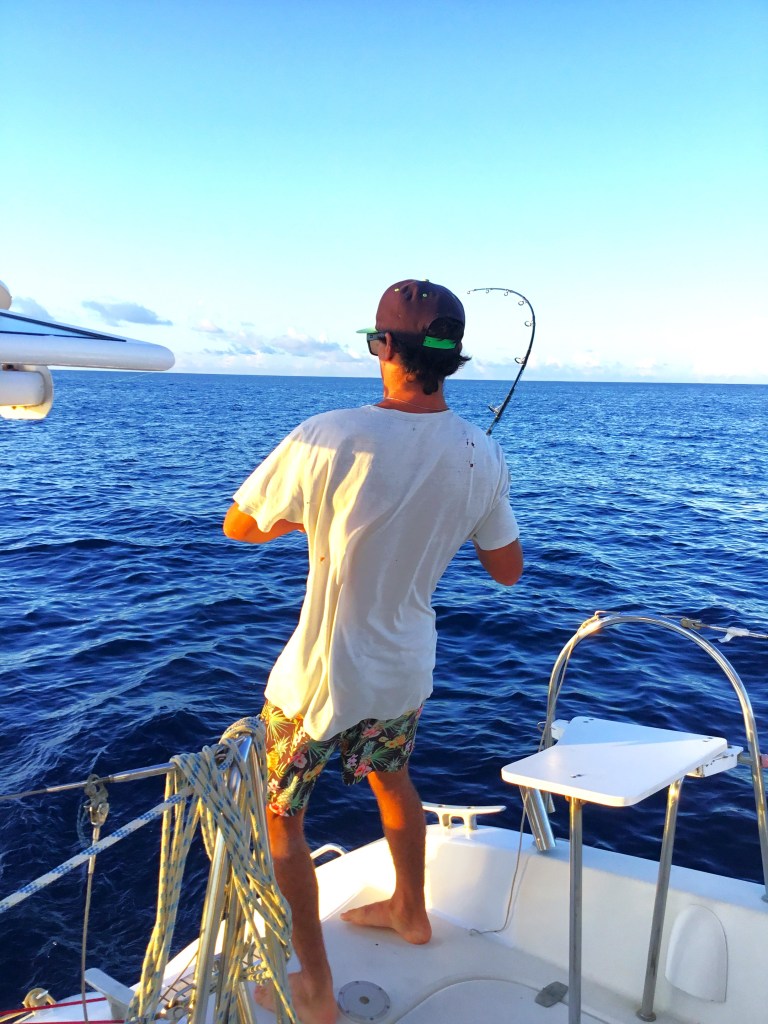 Le lendemain, dans la matinée, route pour Tikehau (environ 6h de navigation), pêche au gros sur la route !